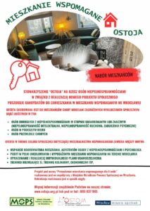 Stowarzyszenie „OSTOJA” w związku z realizacją nowego projektu społecznego poszukuje kandydatów do zamieszkania w mieszkaniu wspomaganym we Wrocławiu.