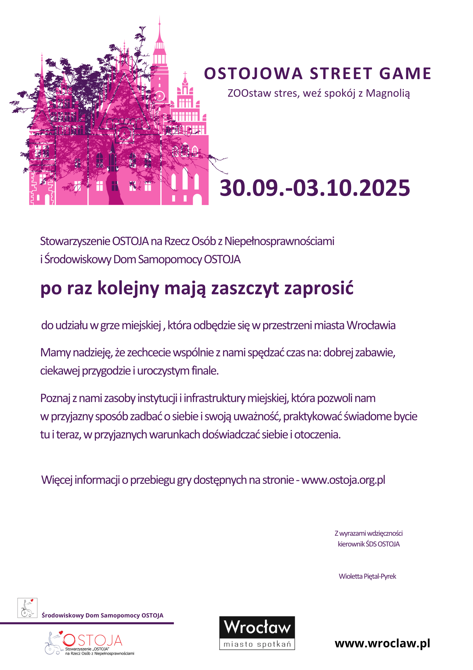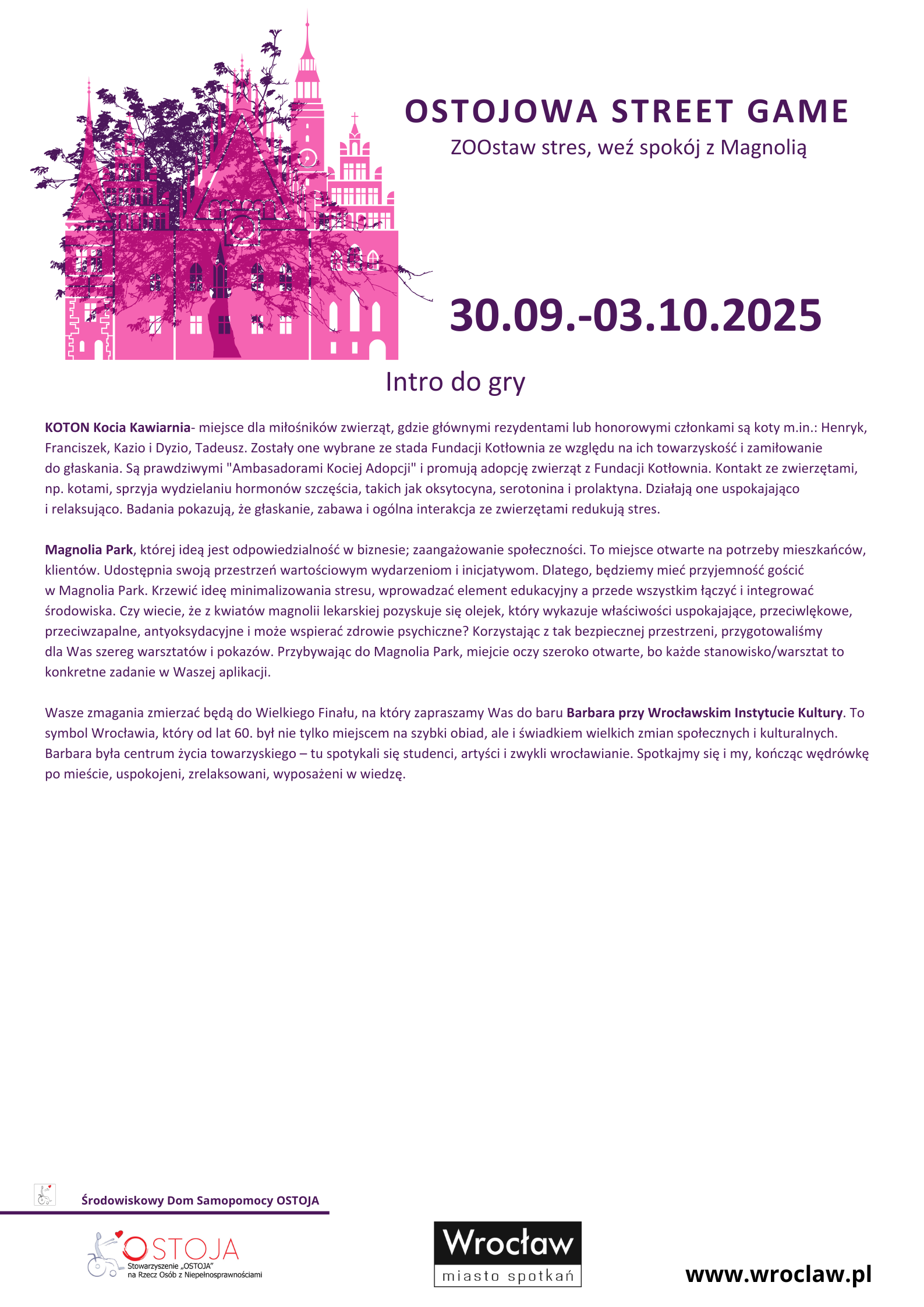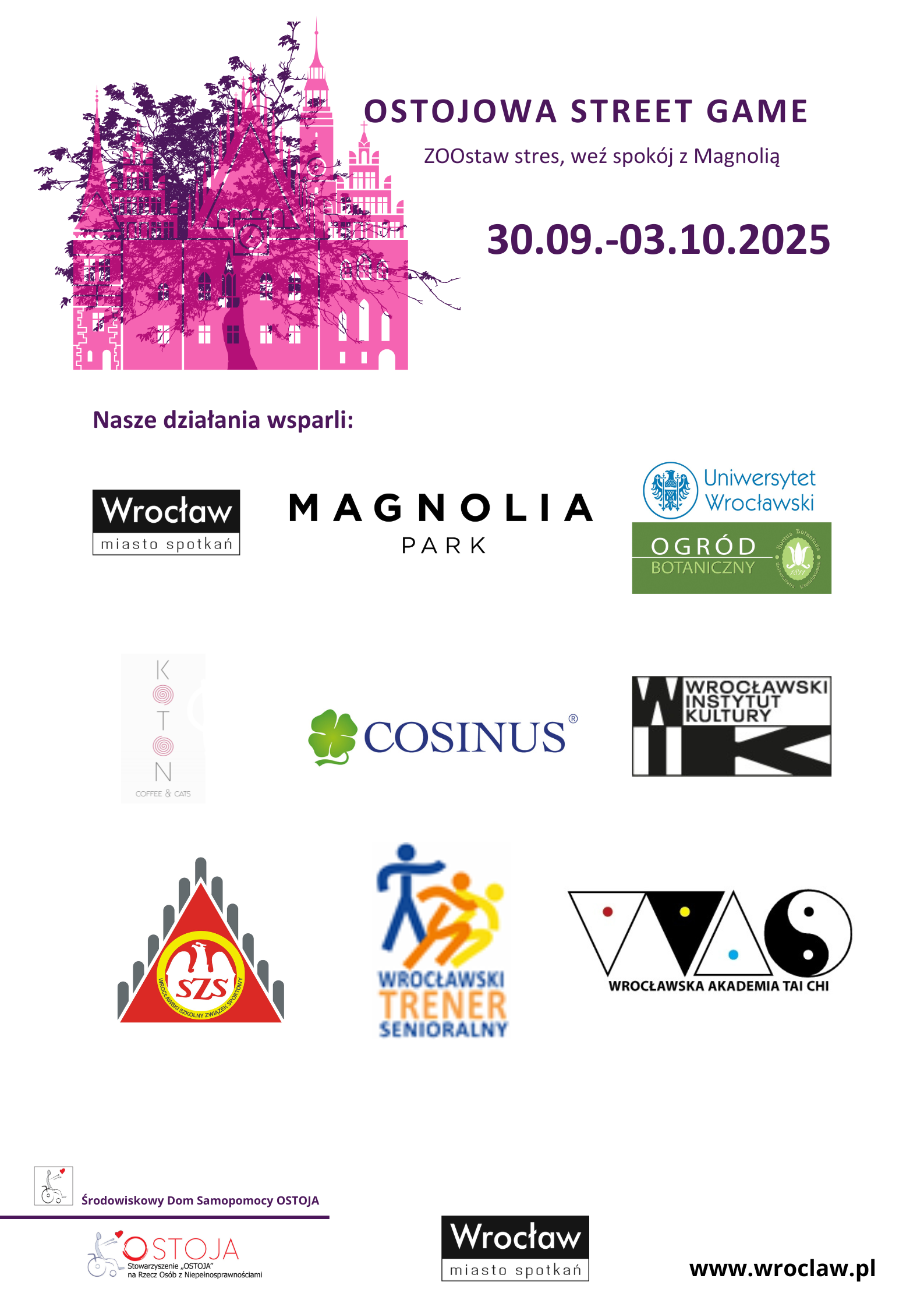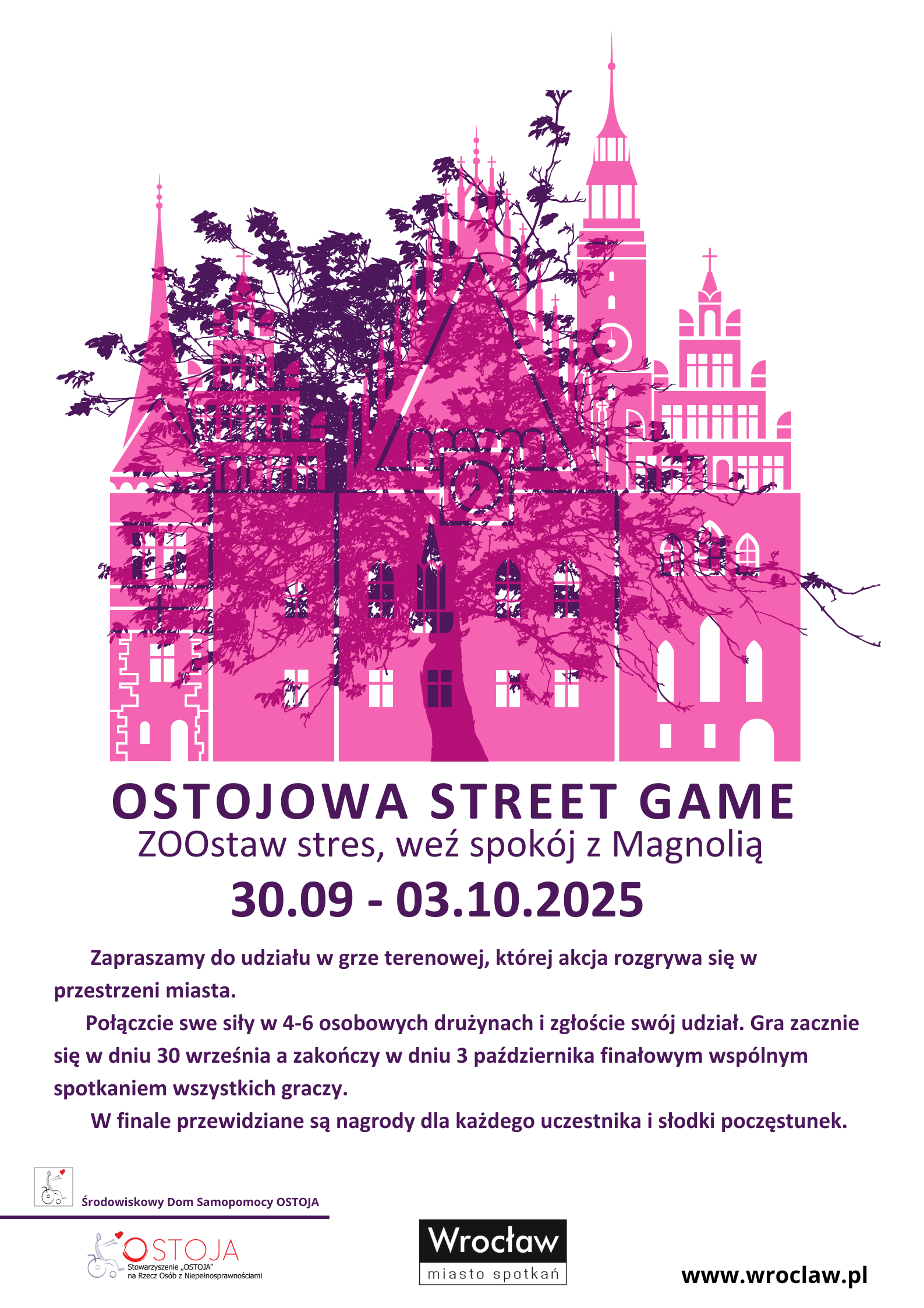 Mamy zaszczyt i prawdziwą przyjemność powitać Was w 3. edycji OSTOJOWEJ STREET GAME. W tym roku pod hasłem „ZOOstaw stres, weź spokój z Magnolią”.