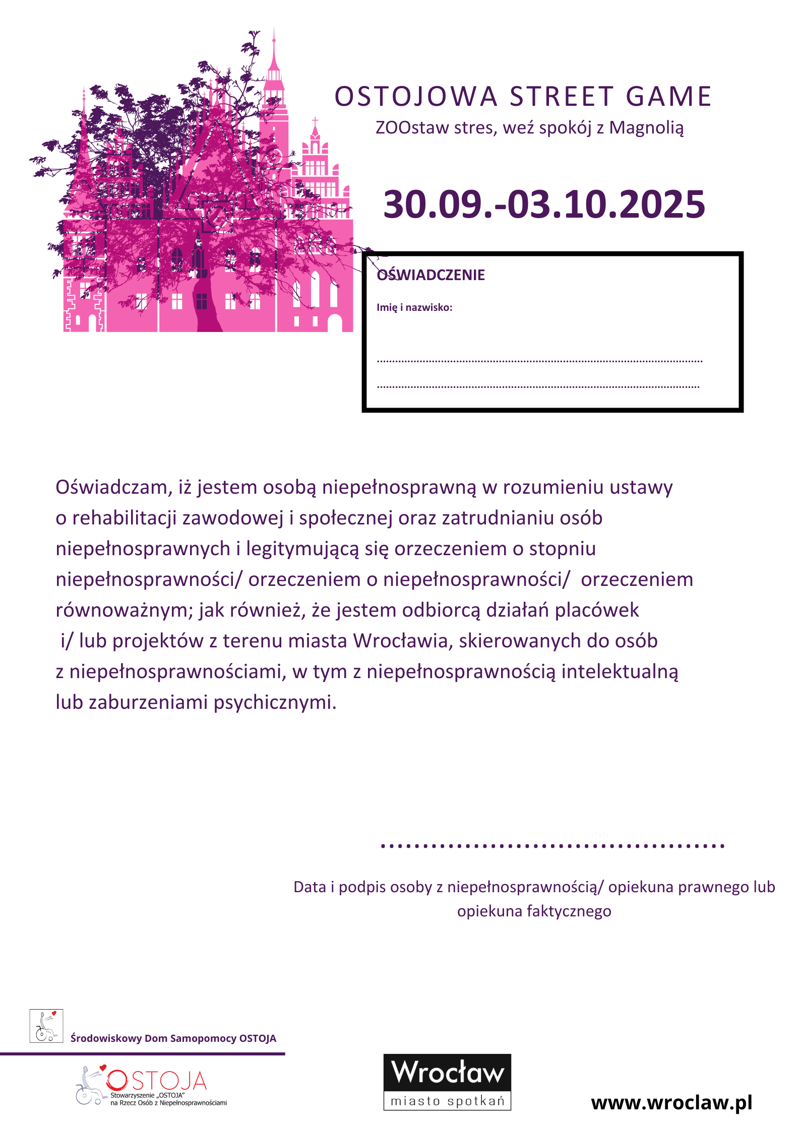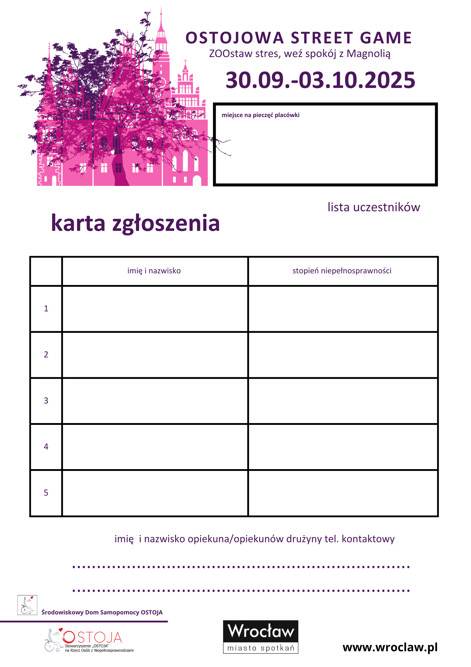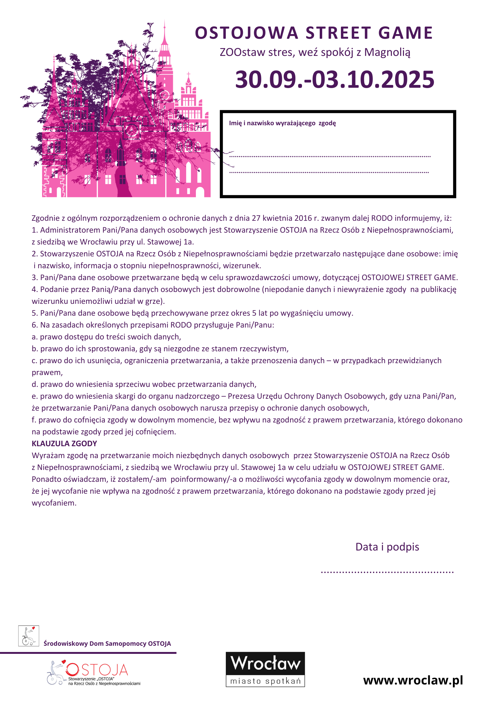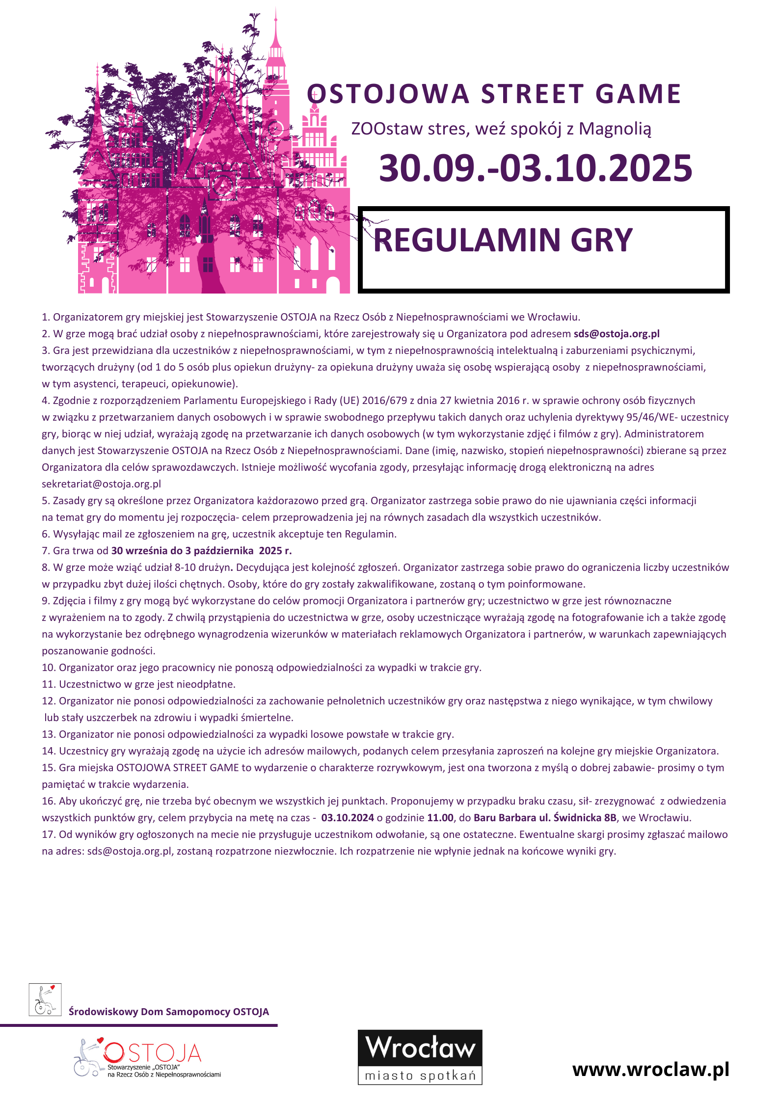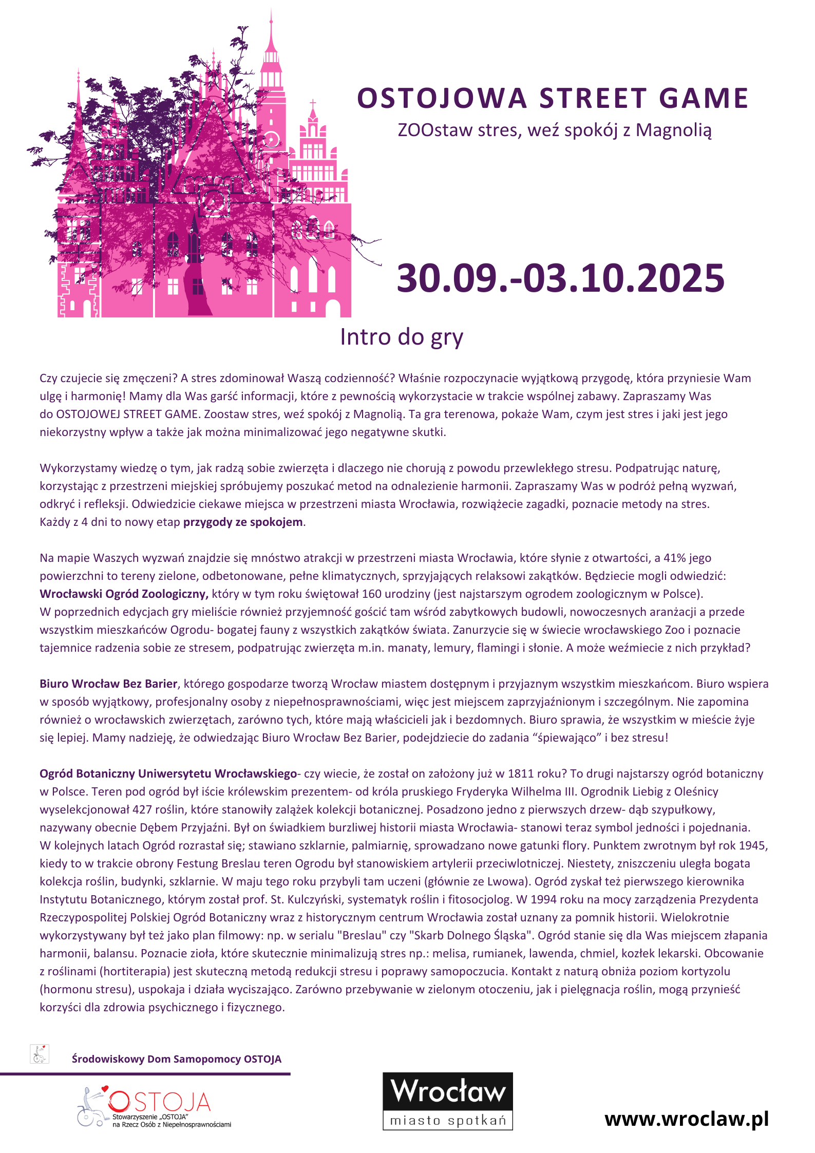 Mamy zaszczyt i prawdziwą przyjemność powitać Was w 3. edycji OSTOJOWEJ STREET GAME. W tym roku pod hasłem „ZOOstaw stres, weź spokój z Magnolią”.